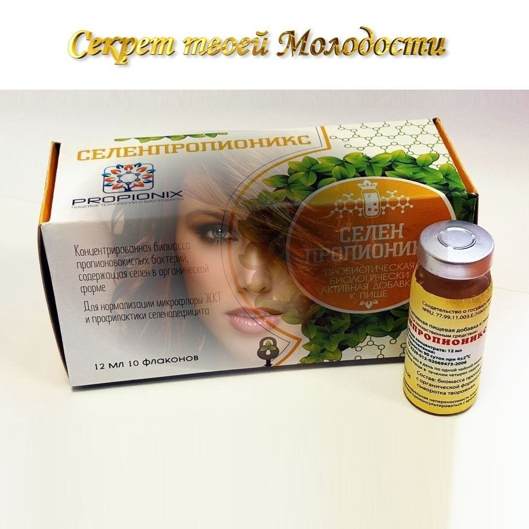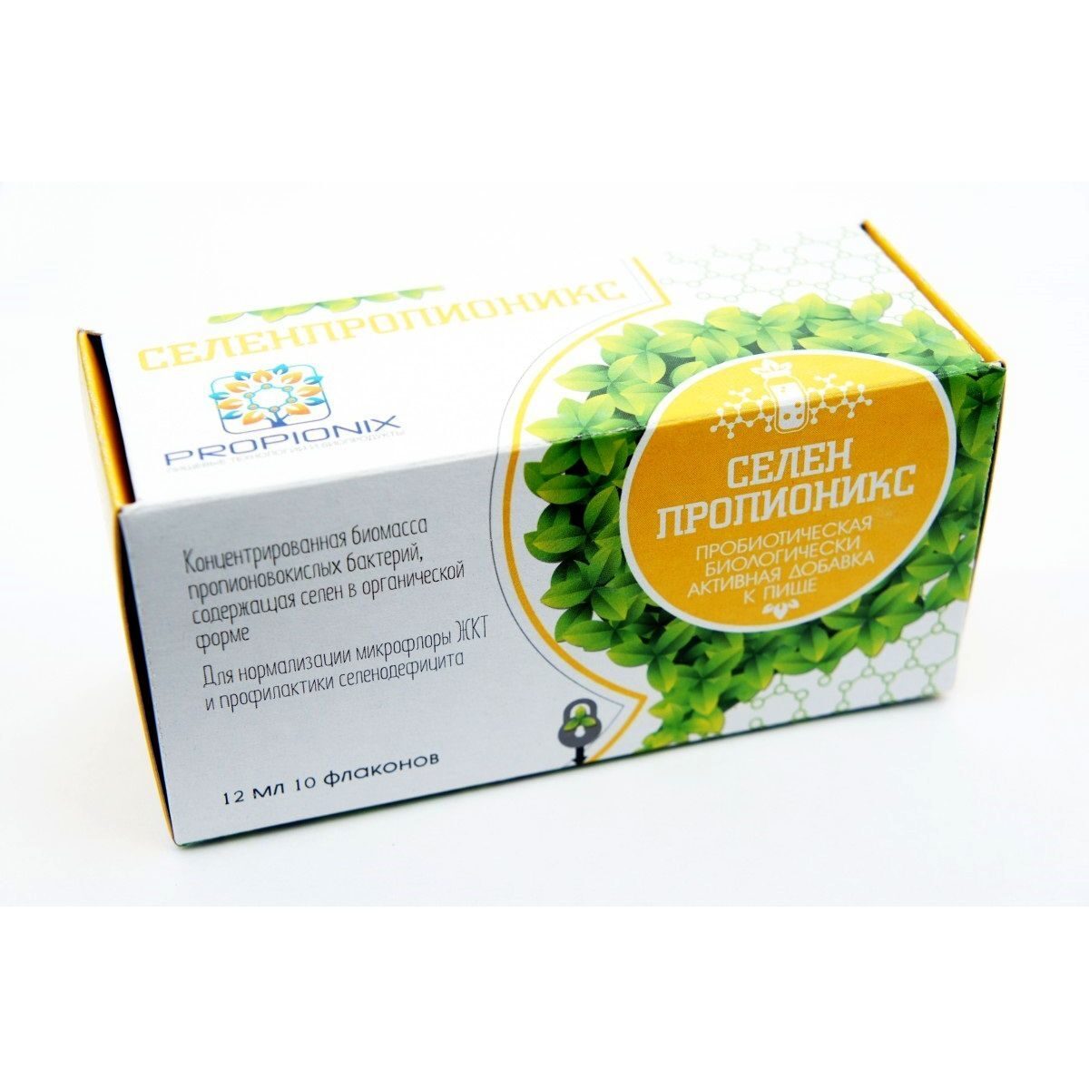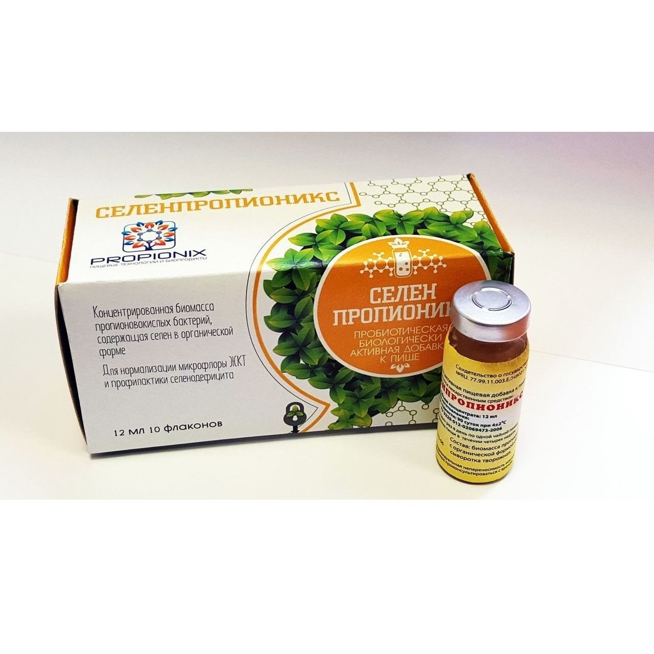 СЕЛЕНПРОПИОНИКС - это инновационный препарат пробиотик, который является продуктом биотехнологического производства и представляет собой концентрированную биомассу пропионовокислых бактерий P. freudenreichii subsp. shermanii – КМ 186, содержащую селен в биодоступной органической форме. Селенпропионикс замедляет процесс старения организма, способствует предупреждению роста аномальных клеток, укрепляет иммунную систему, улучшает работу желудочно-кишечного тракта, устраняет дисбактериоз, защищает организм от сердечно-сосудистых заболеваний, устраняет селенодефицит, эффективен в лечении некоторых кожных заболеваний, обладает антивоспалительными свойствами, помогает выводить из организма ионы тяжелых металлов, предохраняет от возникновения онкологических заболеваний, помогает при артрите, разрушает вредные для организма вещества, нормализует работу печени, щитовидной железы, поджелудочной железы и репродуктивную функцию. Селенпропионикс является также высококачественной закваской пропионовокислых бактерий для получения в домашних условиях кисломолочных биопродуктов.