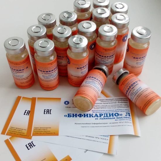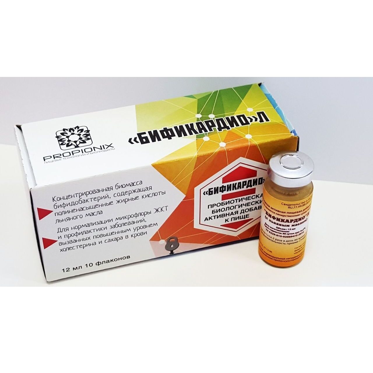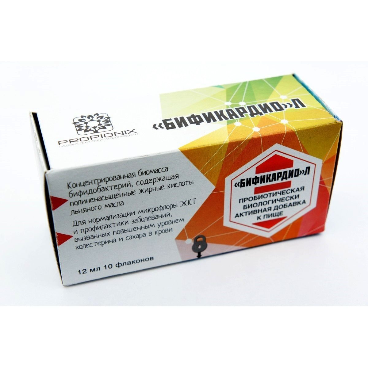 БИФИКАРДИО Л - является продуктом биотехнологического производства и вырабатывается путем культивирования специально подобранного штамма бифидобактерий Bifidobacteruim longum DK-100, обладающего высокой холестеринметаболизирующей активностью на питательной среде, приготовленной на основе творожной сыворотки, содержащей полиненасыщенные жирные кислоты семейства ω-6 и ω-3 (льняного масла). Биоконцентрат предназначен для нормализации микрофлоры желудочно-кишечного тракта и профилактики заболеваний, вызванных повышенным уровнем холестерина и сахара в крови (дислипидемии и диабета). Пробиотическая биологически активная добавка «Бификардио» за достаточно короткий период применения оказывает положительное влияние на липидный профиль (уровень холестерина) и снижает уровень сахара в крови и поэтому рекомендована для включения в комплексную терапию пациентов, имеющих нарушение липидного обмена и сахара в сыворотке крови, в качестве безопасного и эффективного средства.